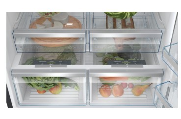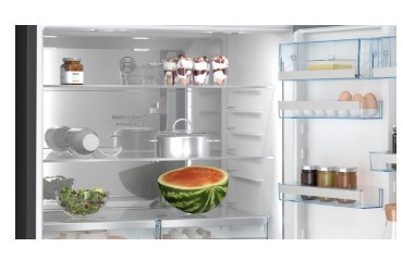 Feature Icon¿Te falta espacio en tu frigorífico sin querer sacrificar mucho más espacio en tu cocina? Este frigorífico XXL es solo un poco más ancho que un modelo estándar, pero ofrece mucho más espacio interior. Aquí caben fácilmente artículos voluminosos como bandejas de horno enteras o sandías, y a su vez al tener más espacio interior puedes organizar mejor los alimentos y verlo todo a simple vista.