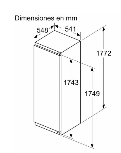 Frigorífico integrable BOSCH KIL82VFE0 177 x54 , Frigorífico Integrable 1 puerta , Medidas :177 x 54 x 54,8cm, Sistema de frío estático, Energetica C.