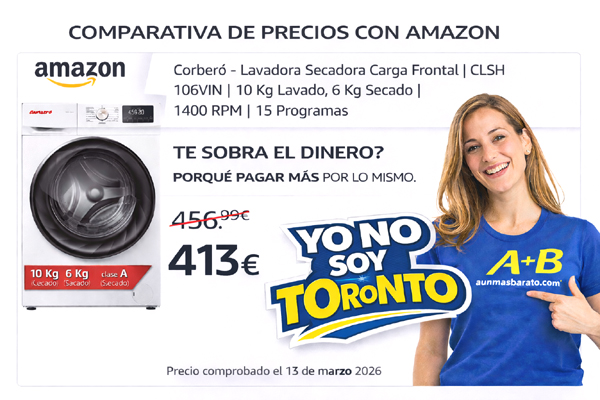 En aunmasbarato.com luchamos a diario para obtener los mejores precios, un buen ejemplo es: Lavadora Secadora corbero CLSH106VIN a un precio de 413.00€ en https://www.aunmasbarato.com/electrodomesticos/lavado/lavadora-secadora/lavadora-secadora-corbero-clsh106vin.