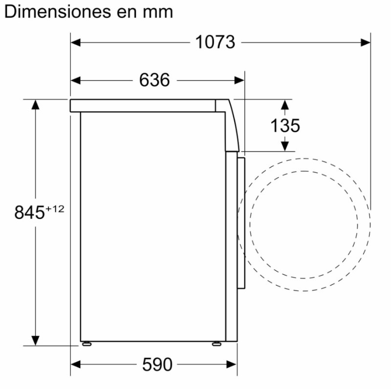Dimensiones del aparato: alto x ancho x fondo (sin puerta) 845x598x590 mm