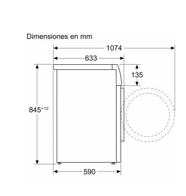 Dimensiones del aparato: alto x ancho x fondo (sin puerta) 845x598x590 mm