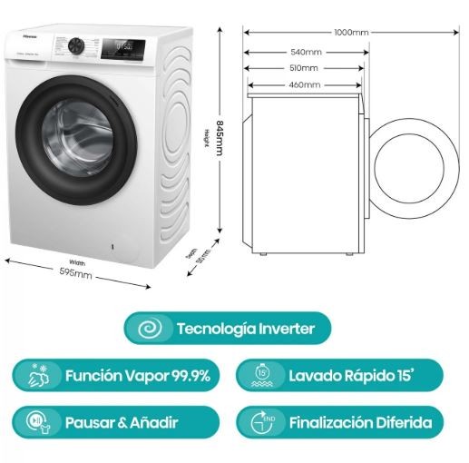 Hisense WFQP8014EVM ? Lavadora de carga frontal 8 kg