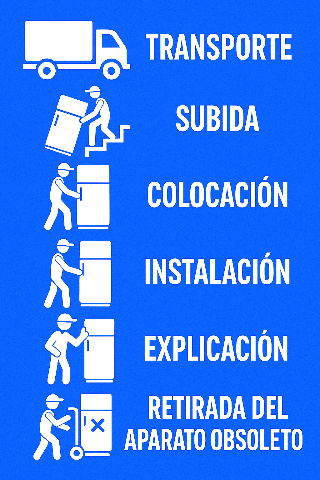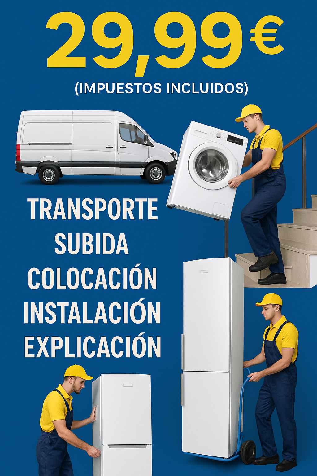 Servicio PREMIUM a toda CATALUÑA, que incluye transportar y subir el electrodoméstico hasta su domicilio y colocarlo en el lugar donde usted desee. Además, por complicado que sea, se lo instalamos y le hacemos la puesta en marcha, con la correspondiente explicación básica.